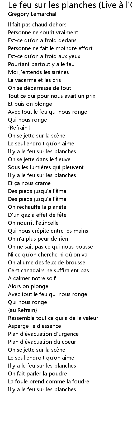 | Song | Le feu sur les planches (Live à l'Olympia, Paris / 2006) |