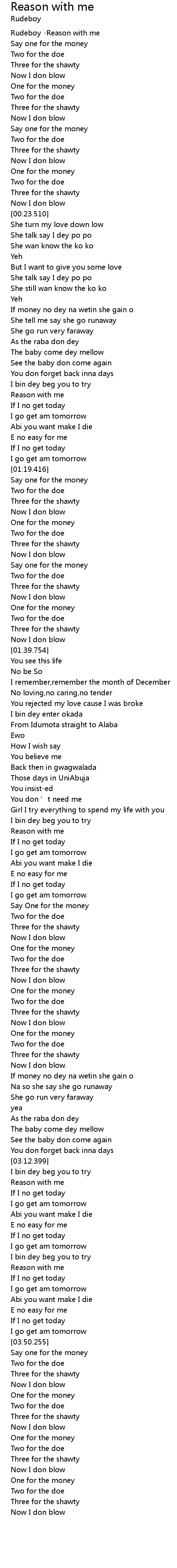 | [03:03.208] | As the raba don dey |
