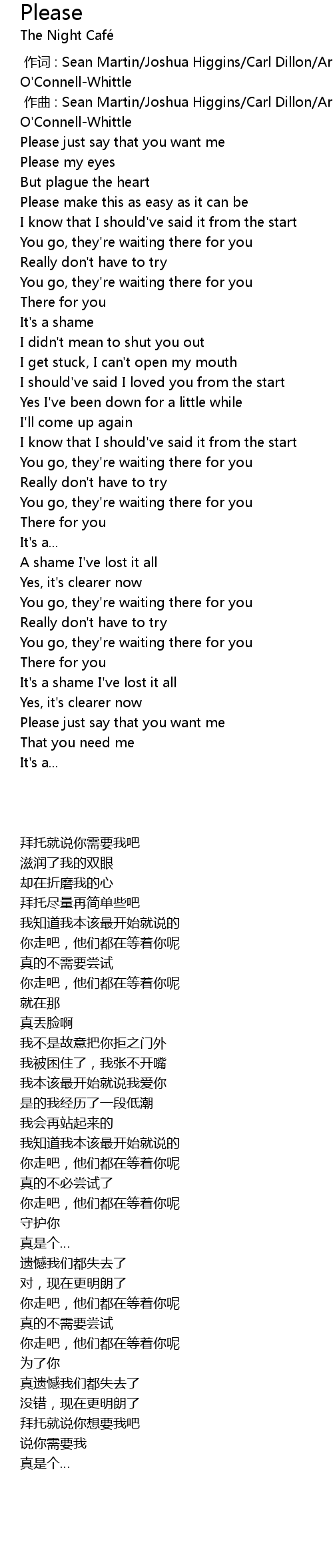 | [00:00.000] | 作词 : Sean Martin/Joshua Higgins/Carl Dillon/Arran O'Connell-Whittle |