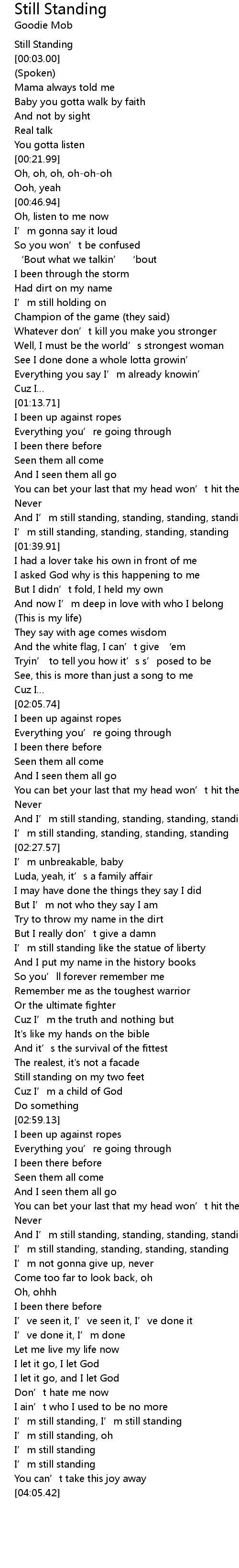 | [02:55.35] | Still standing on my two feet |