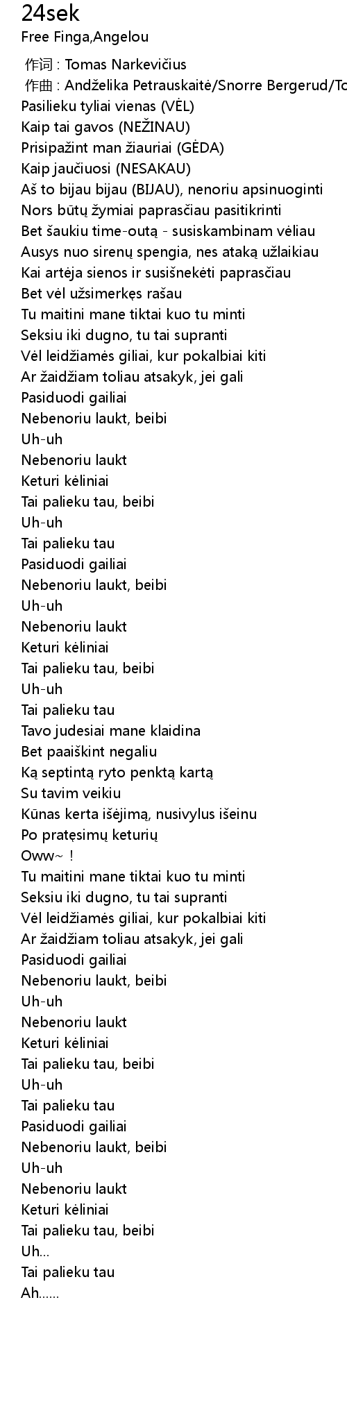 | [00:36.72] | Seksiu iki dugno, tu tai supranti |