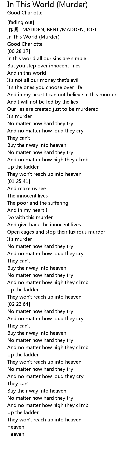 | [00:00.93] | In This World (Murder) |