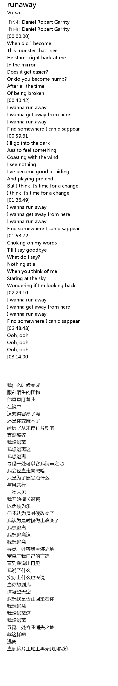 | [00:00.000] | zuo ci : Daniel Robert Garrity |