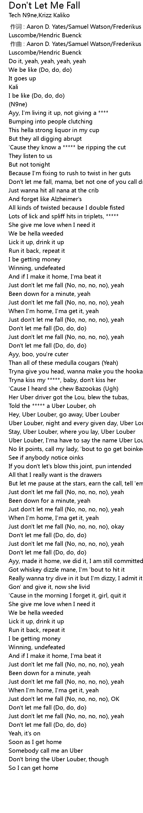 | [02:01.83] | Just don't let me fall (No, no, no, no), yeah |