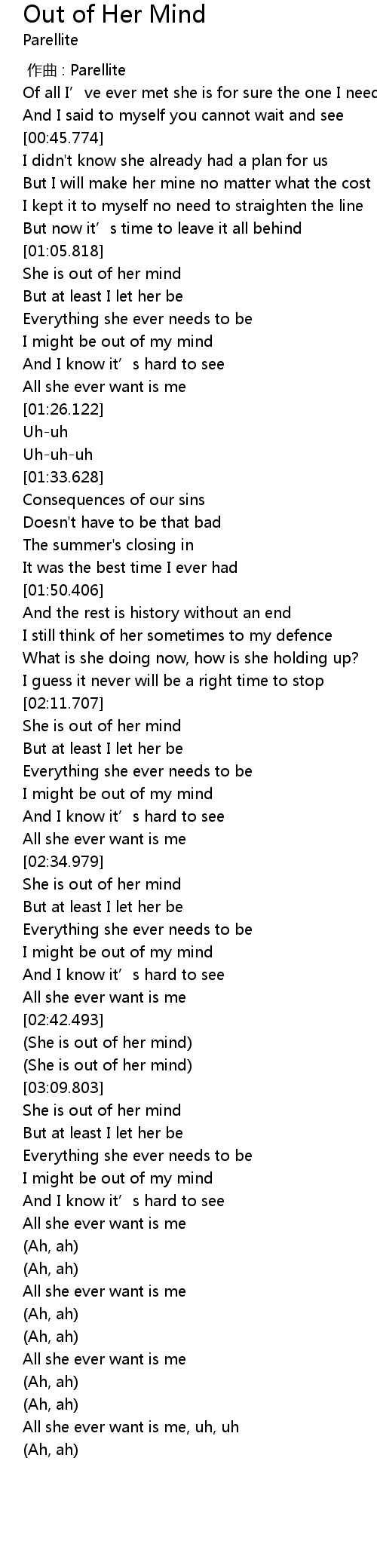 | [02:35.481] | She is out of her mind |
