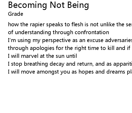 | Song | Becoming Not Being |