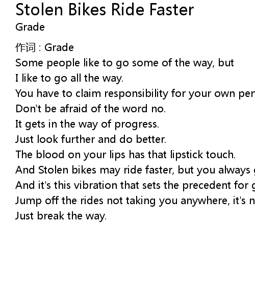 | Song | Stolen Bikes Ride Faster |