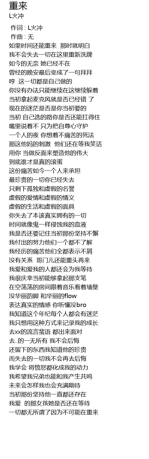 | [00:00.000] | 作词 : L火冲 |