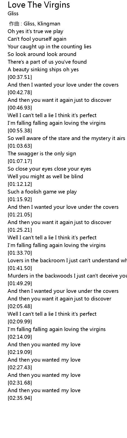 | [00:51.90] | I'm falling falling again loving the virgins |