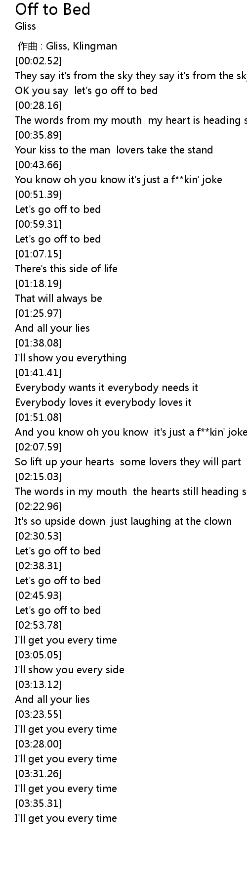 | [02:00.67] | And you know oh you know it's just a f**kin' joke |