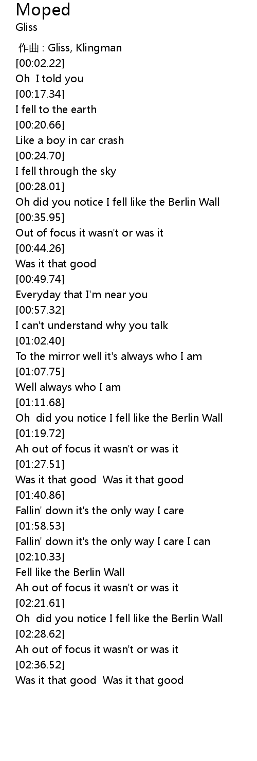 | [02:22.25] | Oh did you notice I fell like the Berlin Wall |