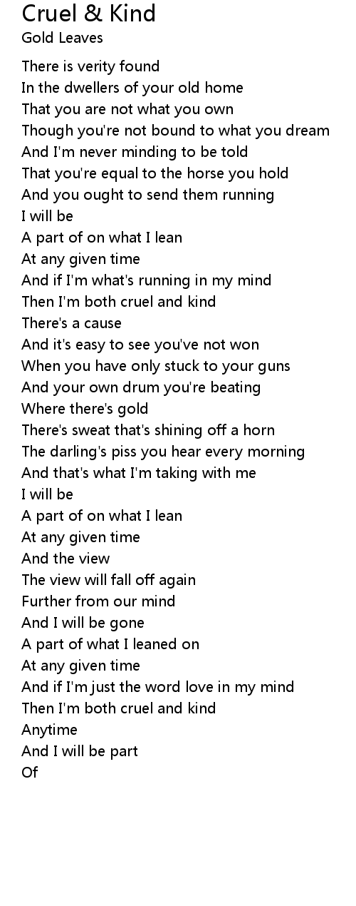 Then I'm both cruel and kind |
