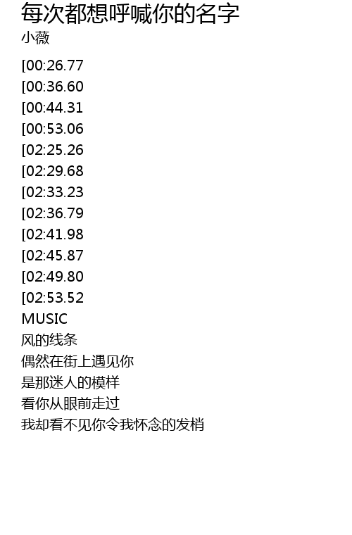 | [03:42.88][02:41.98][01:17.06] | 每次都想呼喊你的名字 |