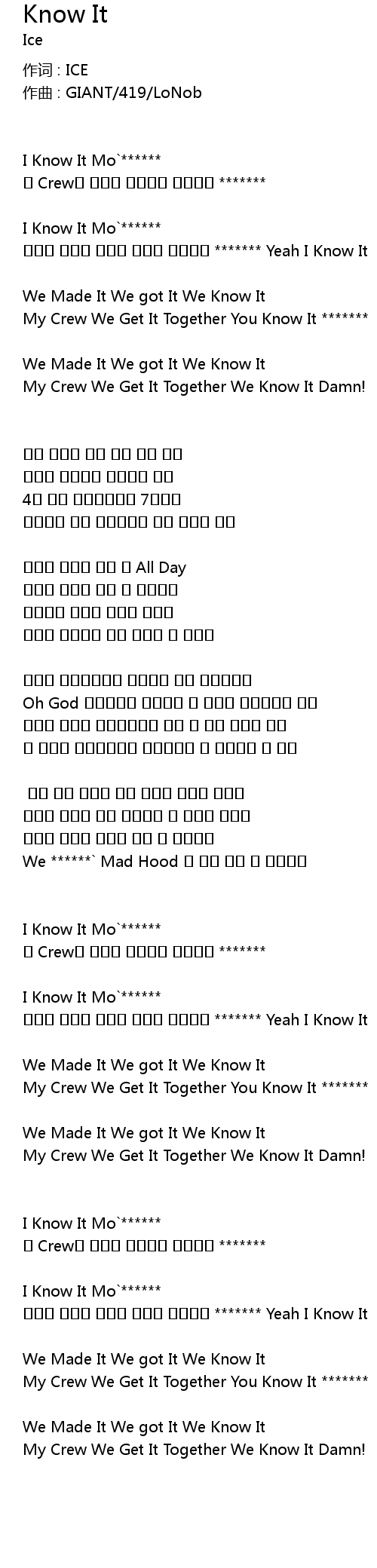 | 이렇게 죽이는 시간을 보낼지 몰랐겠지 ******* Yeah I Know It | |