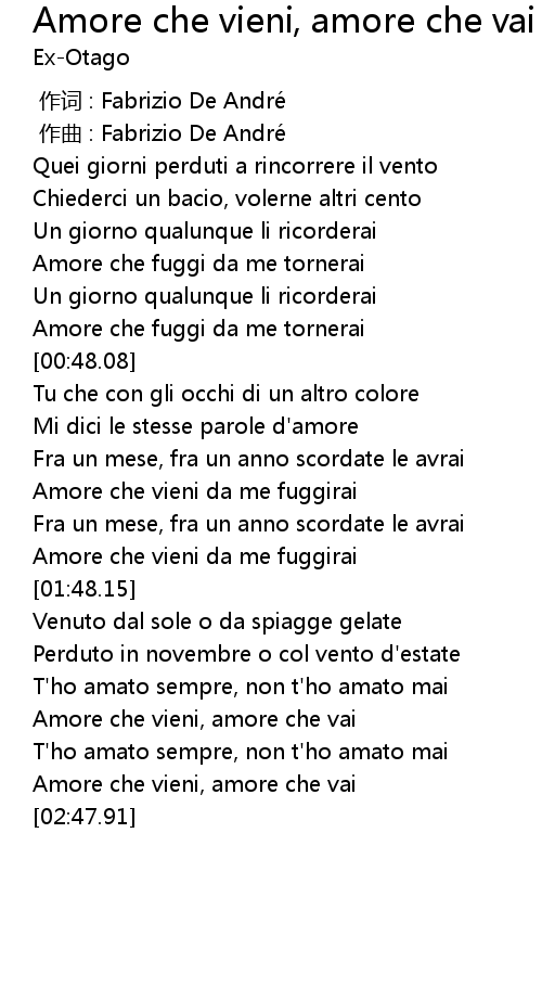 | [00:00.000] | zuò cí : Fabrizio De André |