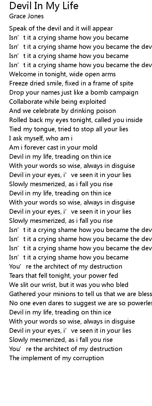| Song | Devil In My Life |