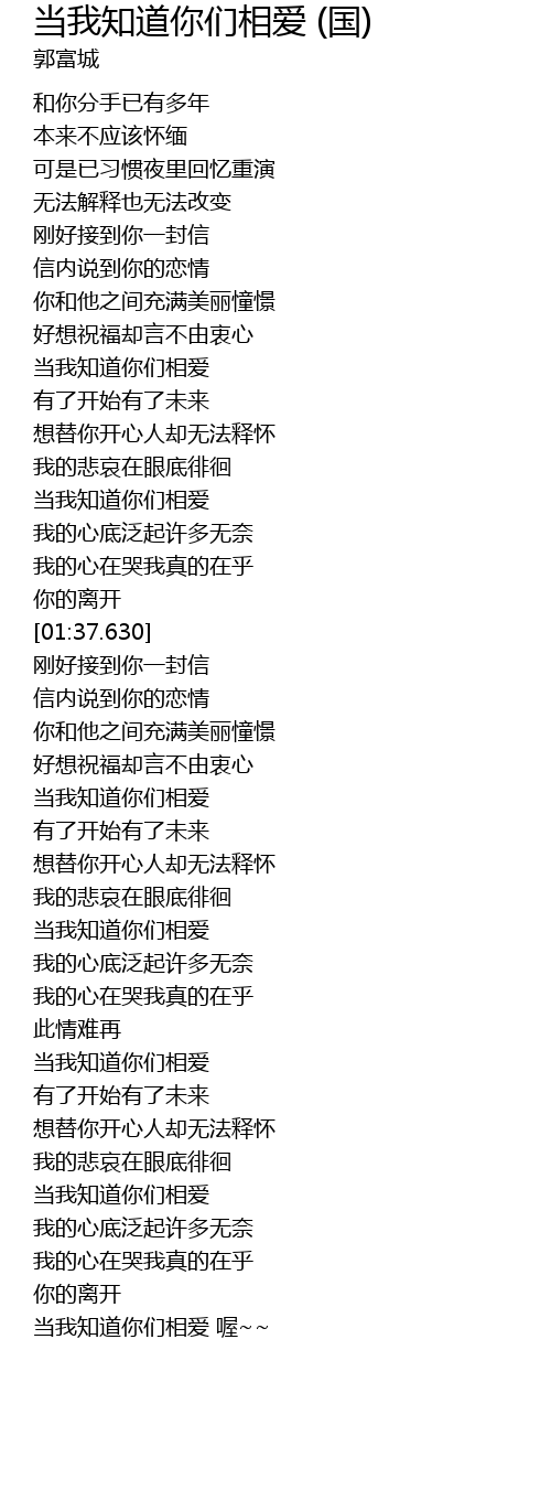 | [03:38.840] | 当我知道你们相爱 喔~~ |