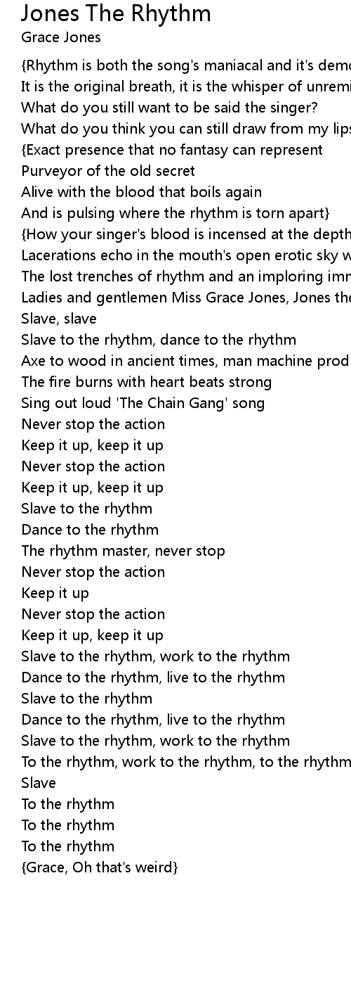 Ladies and gentlemen Miss Grace Jones, Jones the Rhythm} |
