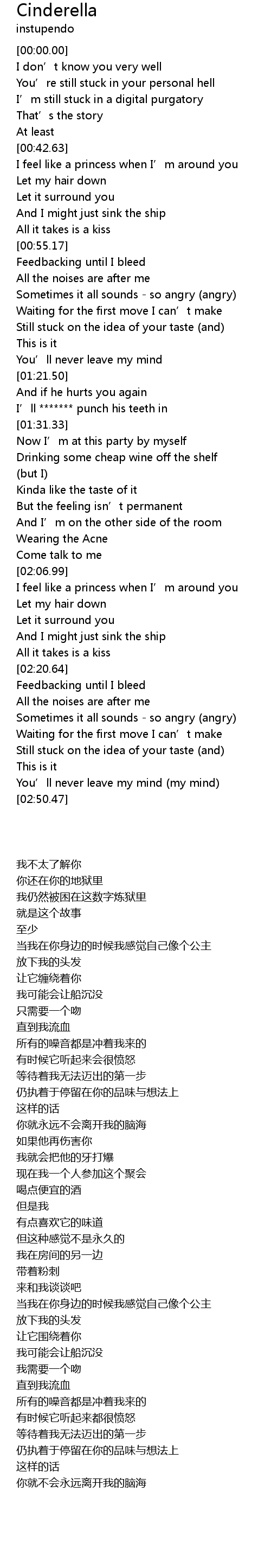 | [02:21.89] | Feedbacking until I bleed |