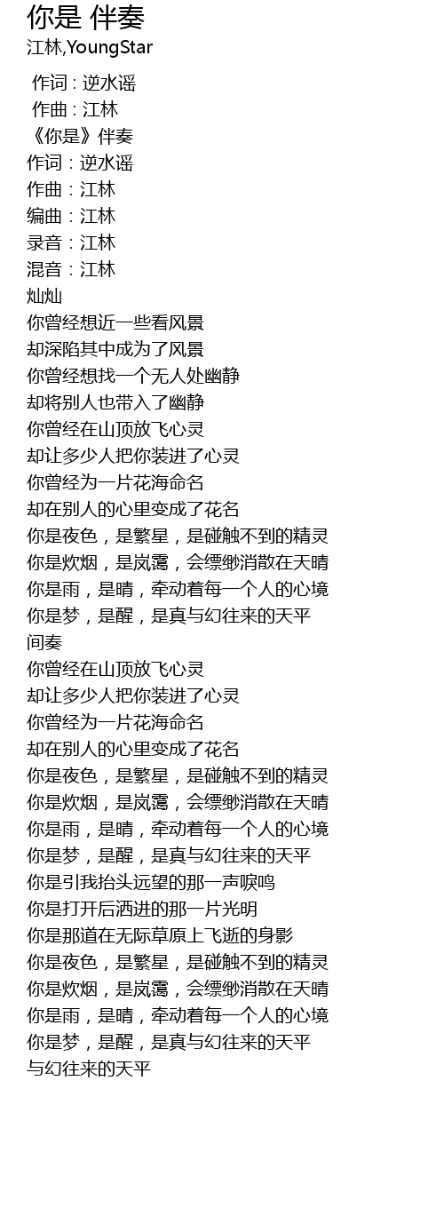 | [04:28.000] | 你是夜色,是繁星,是碰触不到的精灵 |