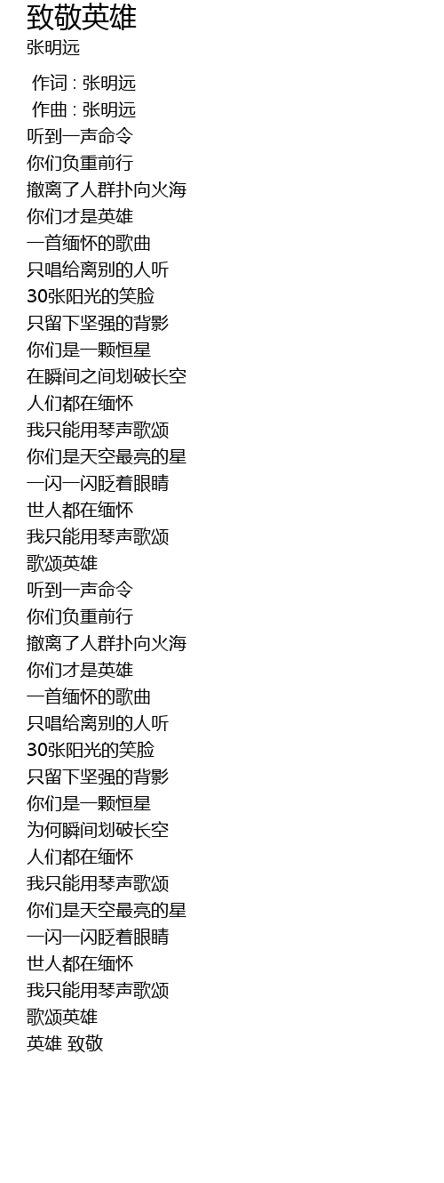 | [00:26.17] | 你们才是英雄 |