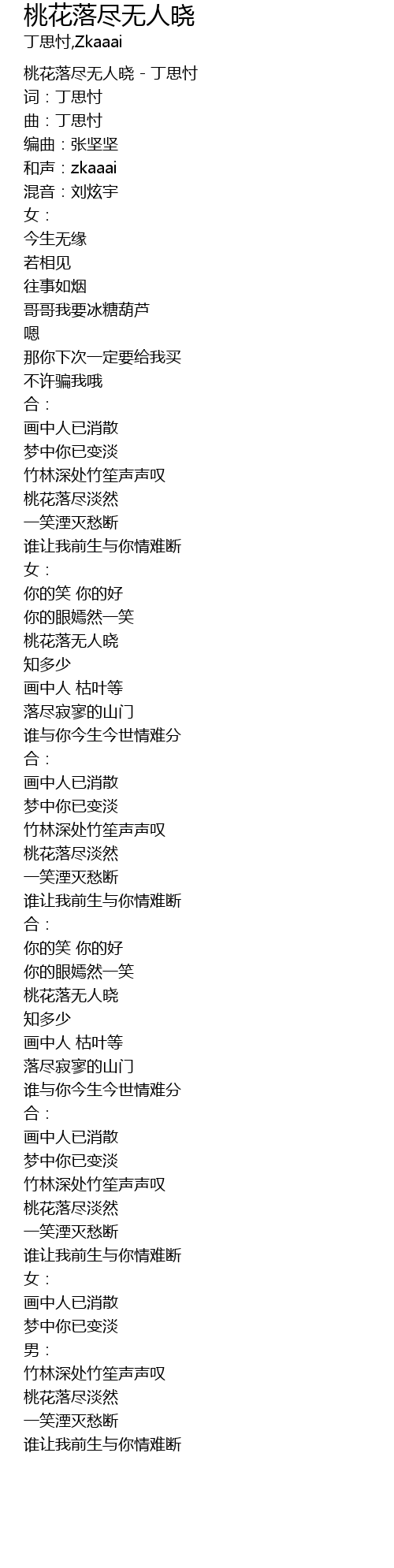 | [00:00.16] | 桃花落尽无人晓 - 丁思忖 |