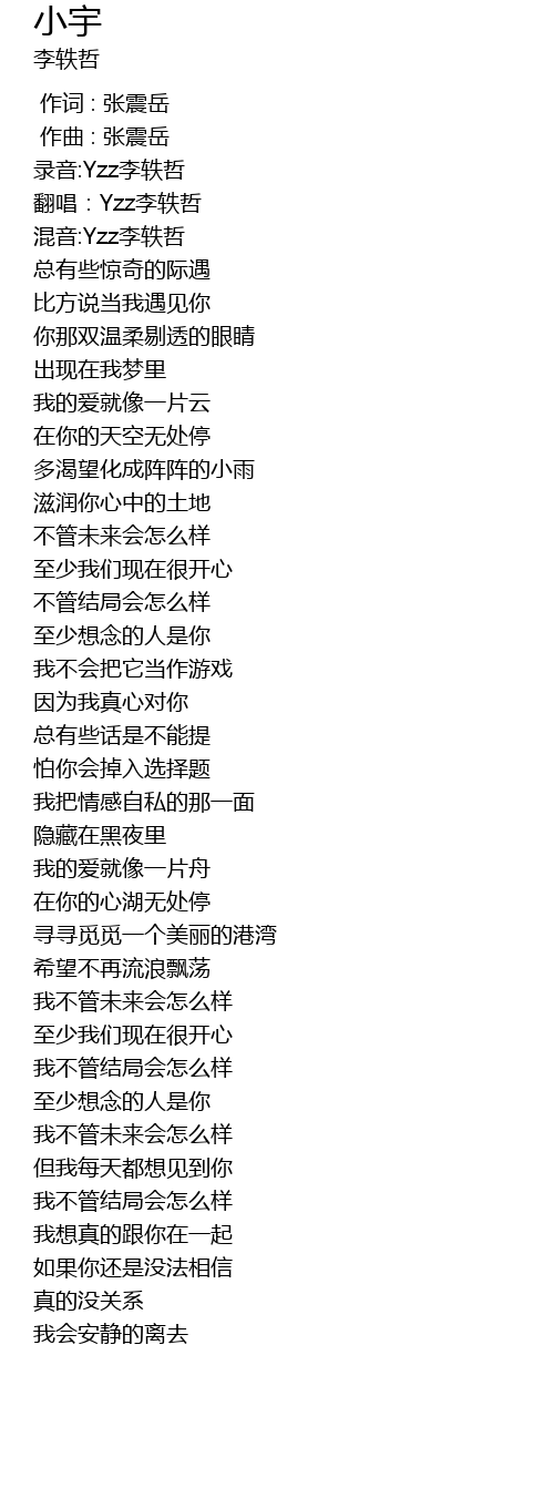 | [00:06.34] | 翻唱:Yzz李轶哲 |