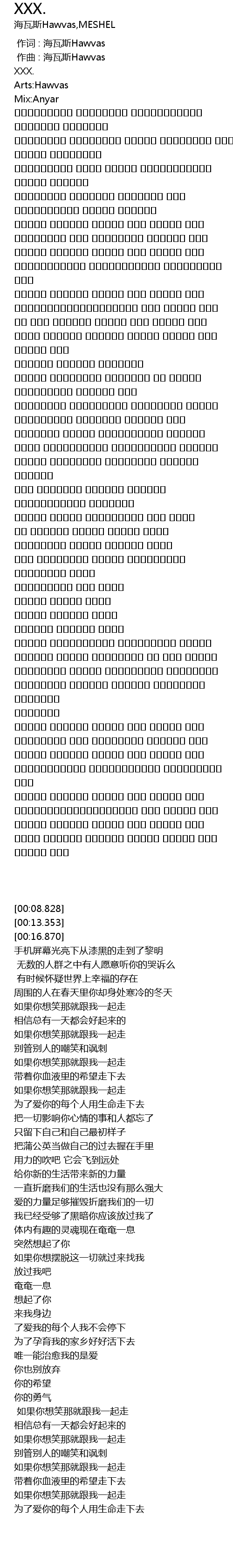 作词 : 海瓦斯Hawvas |