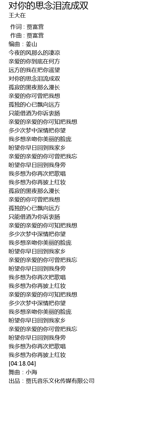 | [04:28.55] | 出品:贾氏音乐文化传媒有限公司 |