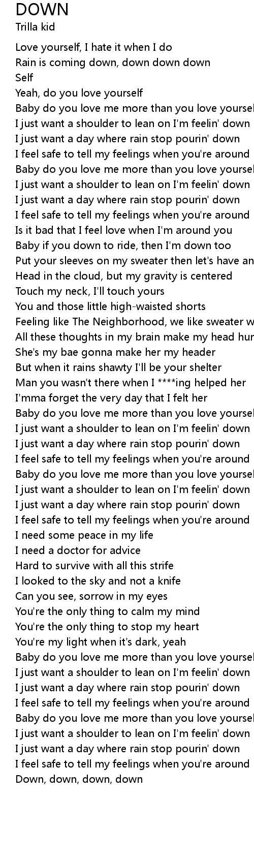 I just want a shoulder to lean on I'm feelin' down |