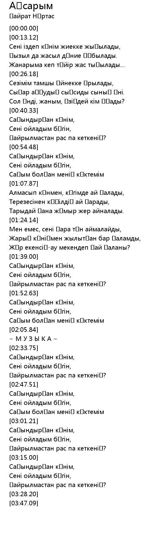 Сол әнді, жаным, өзіңдей кім ұғады? |
