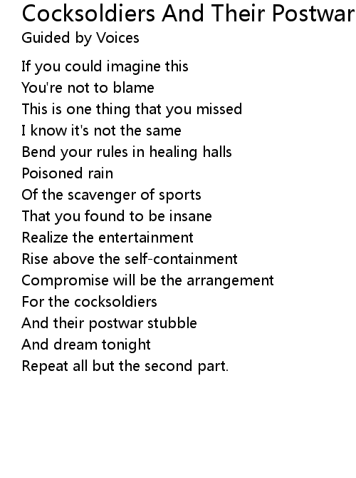 | Song | Cocksoldiers And Their Postwar Stubble |