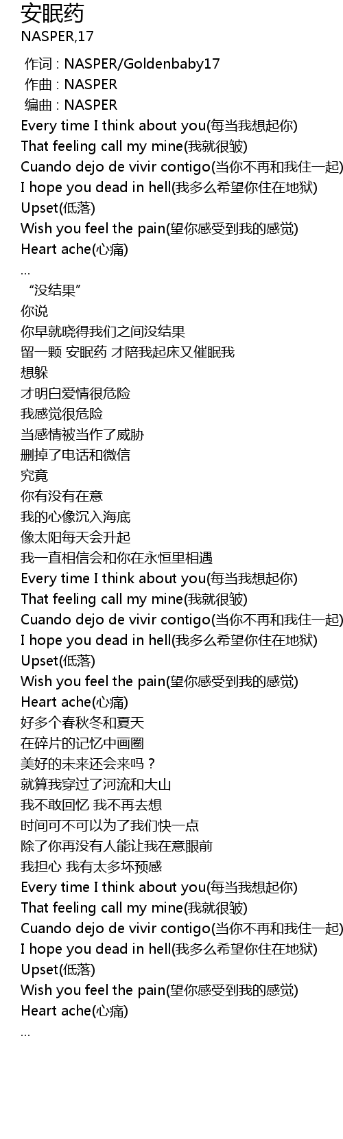 | [00:00.000] | 作词 : NASPER/Goldenbaby17 |