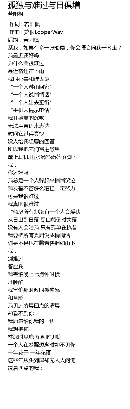 | [01:14.731] | 我要把所有委屈说成悄悄话 |