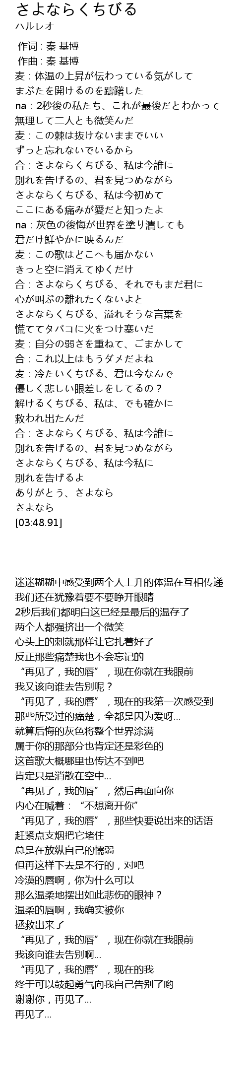 | [01:51.71] | 合:さよならくちびる、それでもまだ君に |
