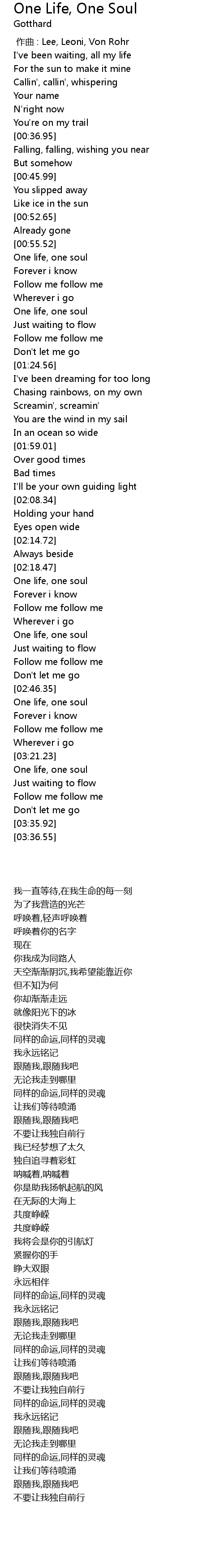 | [02:32.33] | One life, one soul |