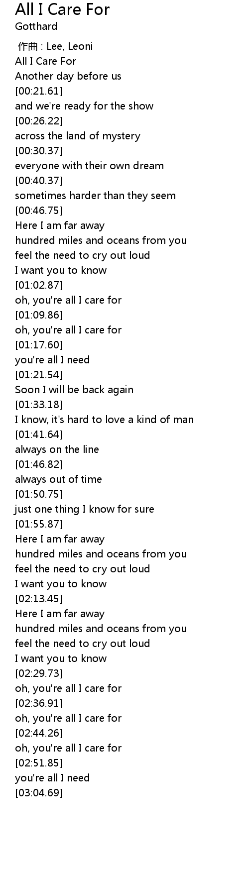 | [00:01.51] | All I Care For |