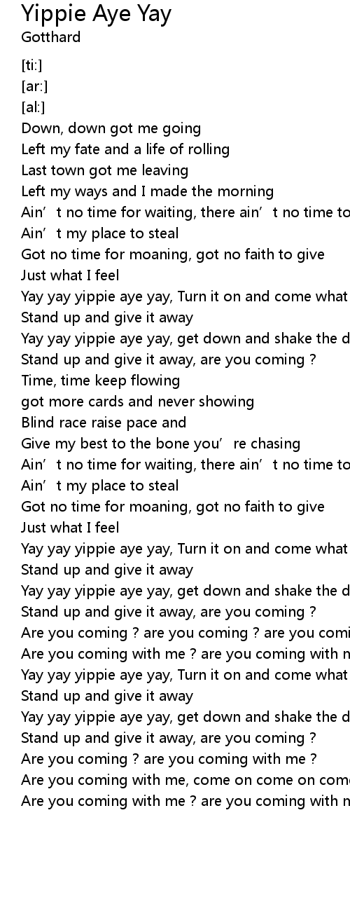| [02:58.78] | Yay yay yippie aye yay, Turn it on and come what may |