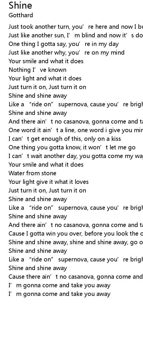 | [02:53.07] | Shine and shine away, shine and shine away, go on and |