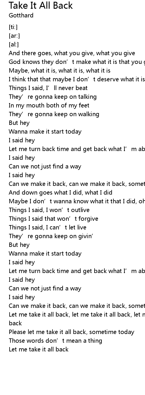 | [02:38.87] | Let me take it all back, let me take it all back, let me take it all back |