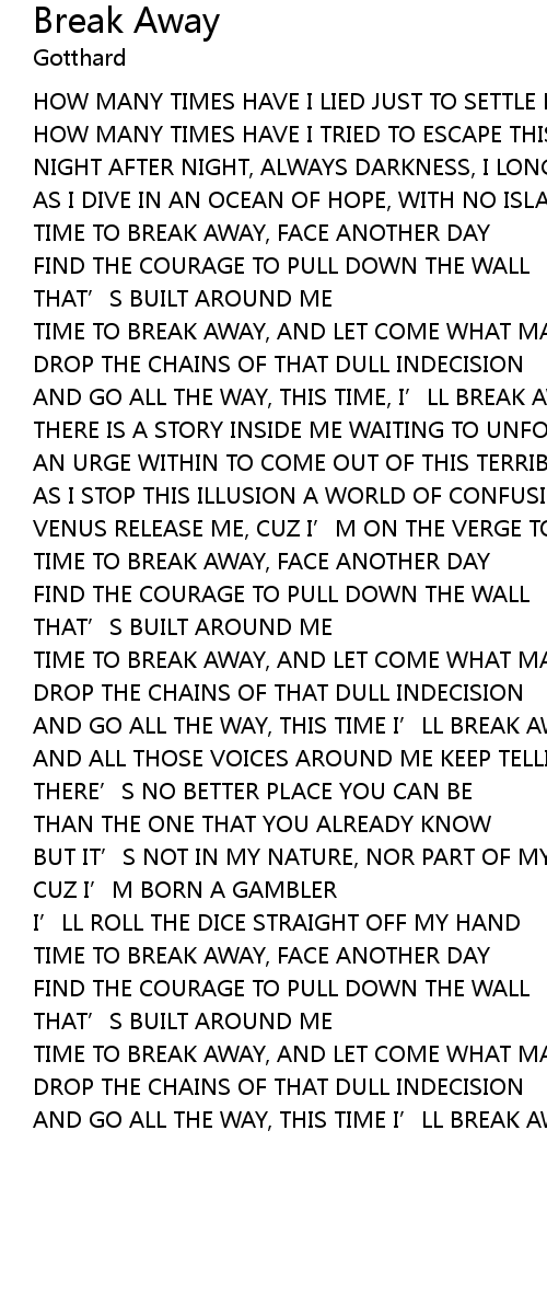 | [00:46.80] | TIME TO BREAK AWAY, FACE ANOTHER DAY |
