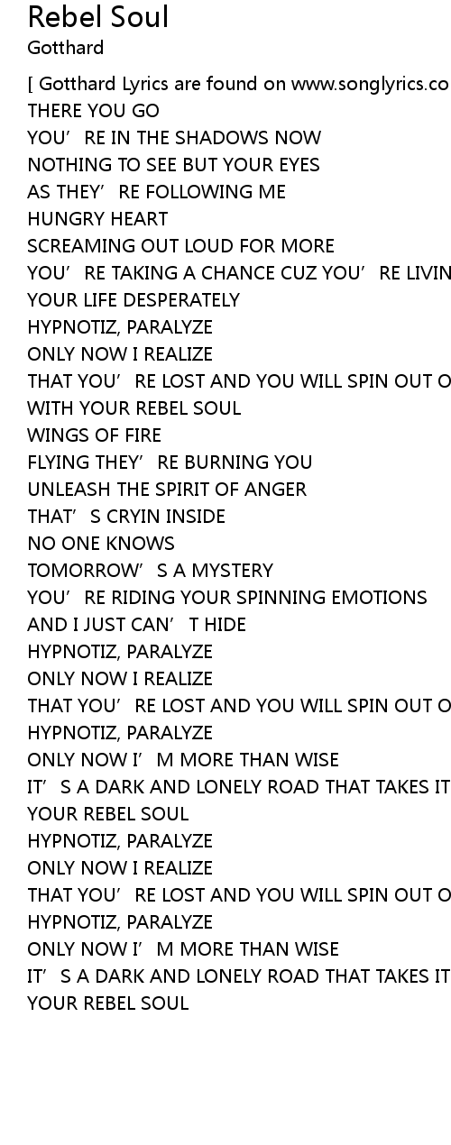| Gotthard Lyrics are found on www. songlyrics. com | |