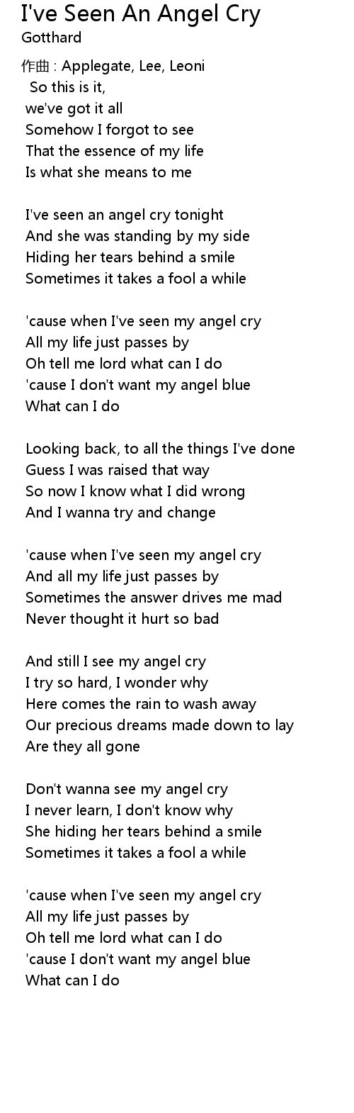 | ' cause when I' ve seen my angel cry | |