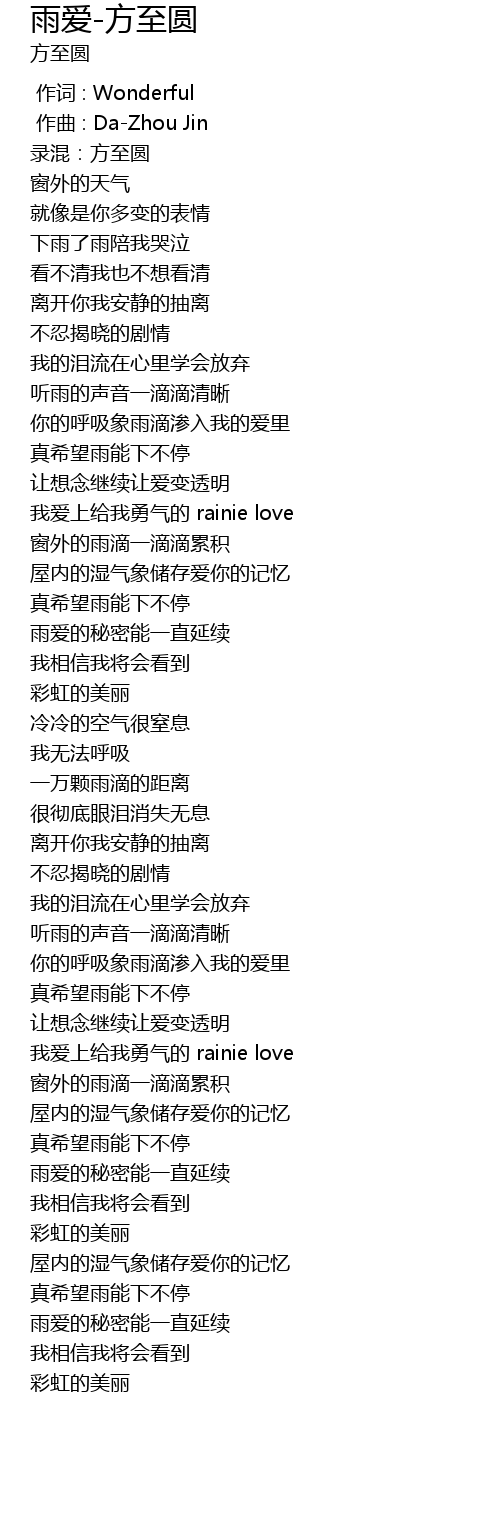 | Song | 雨爱-方至圆 |