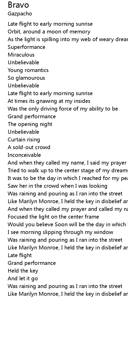 | Like Marilyn Monroe, I held the key in disbelief and let it go | |