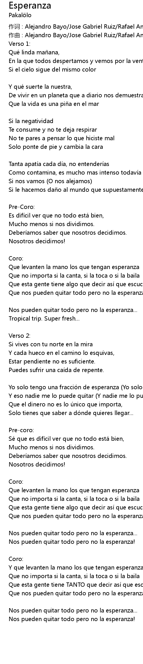| Song | Esperanza |