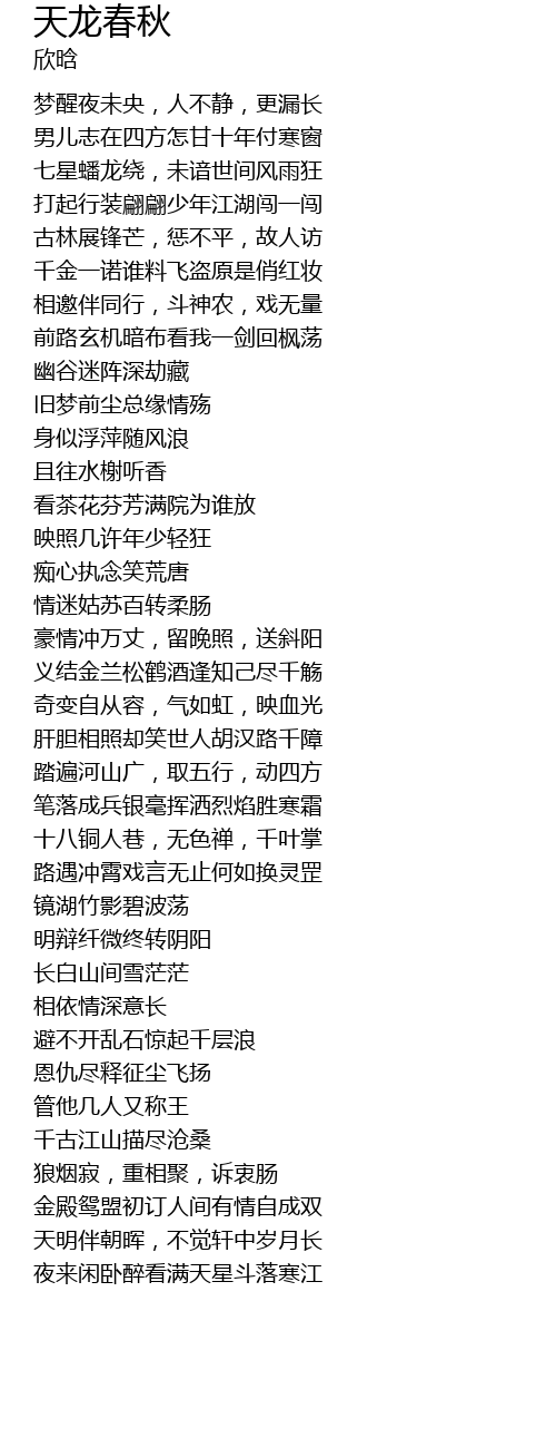 | Song | 天龙春秋 |