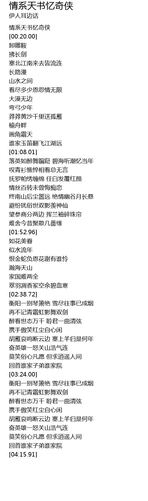 | [00:00.00] | 情系天书忆奇侠 |
