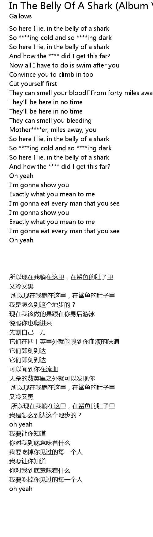 | [00:11.252] | So here I lie, in the belly of a shark |