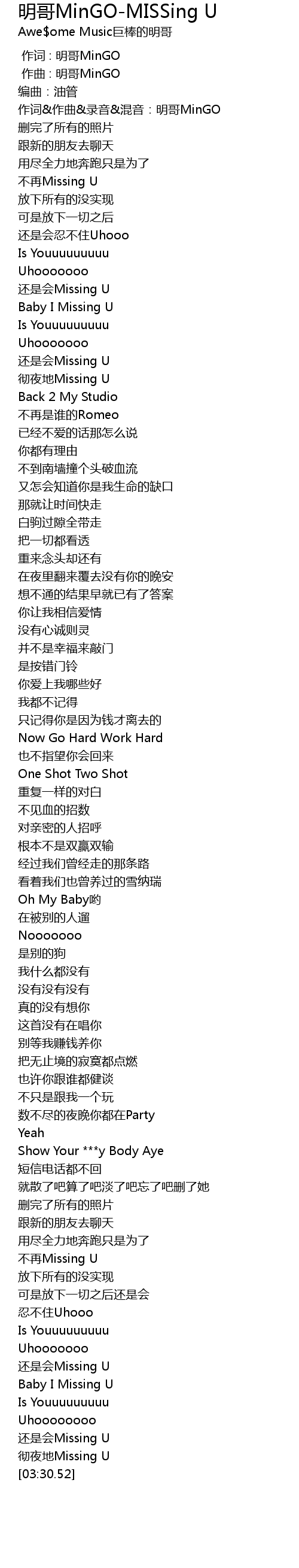 | [02:52.62] | 不再Missing U |